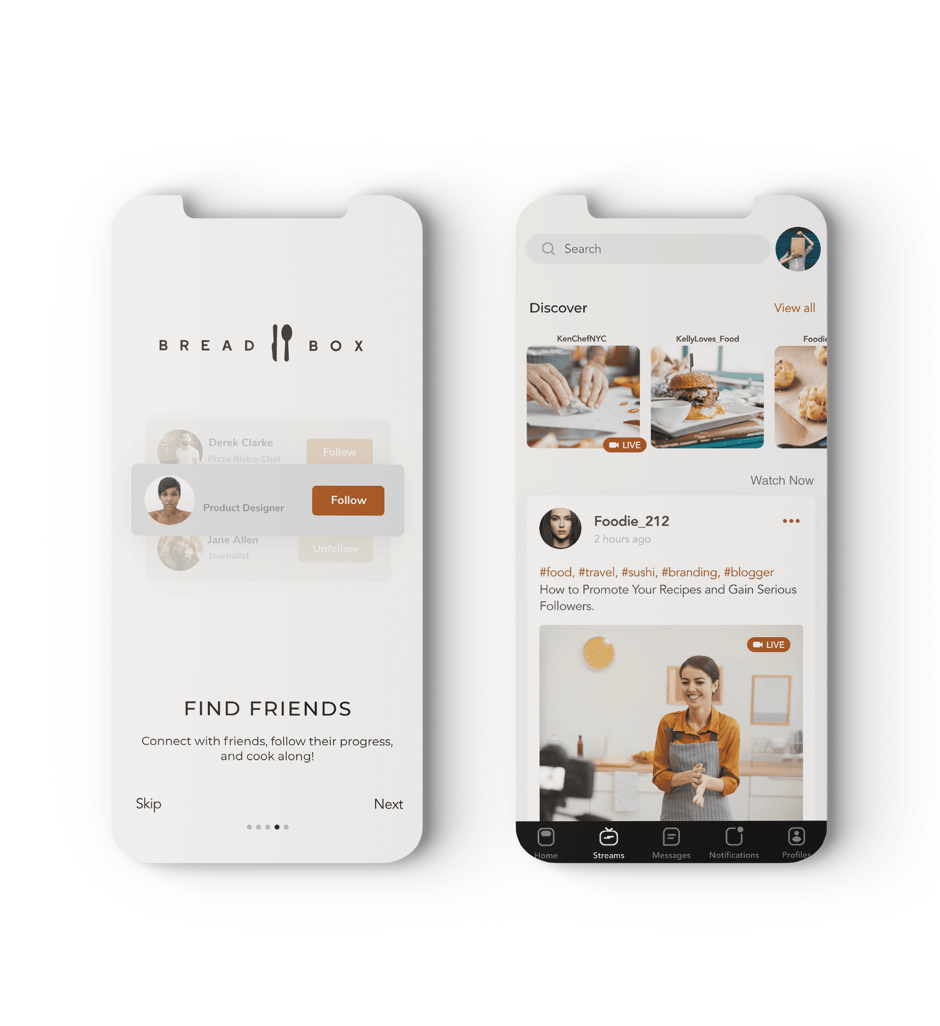 The user experience for Breadbox was centered on making cooking feel fun, social, and effortlessly shareable. Every interaction was designed to remove friction so users could focus on creating, discovering, and connecting, rather than figuring out how the app worked. By keeping participation simple—whether posting a dish, joining a live cook-along, or exploring new recipes—the platform invites users of all skill levels to jump in and feel confident sharing their kitchen creations in ways that inspire and bring people together.