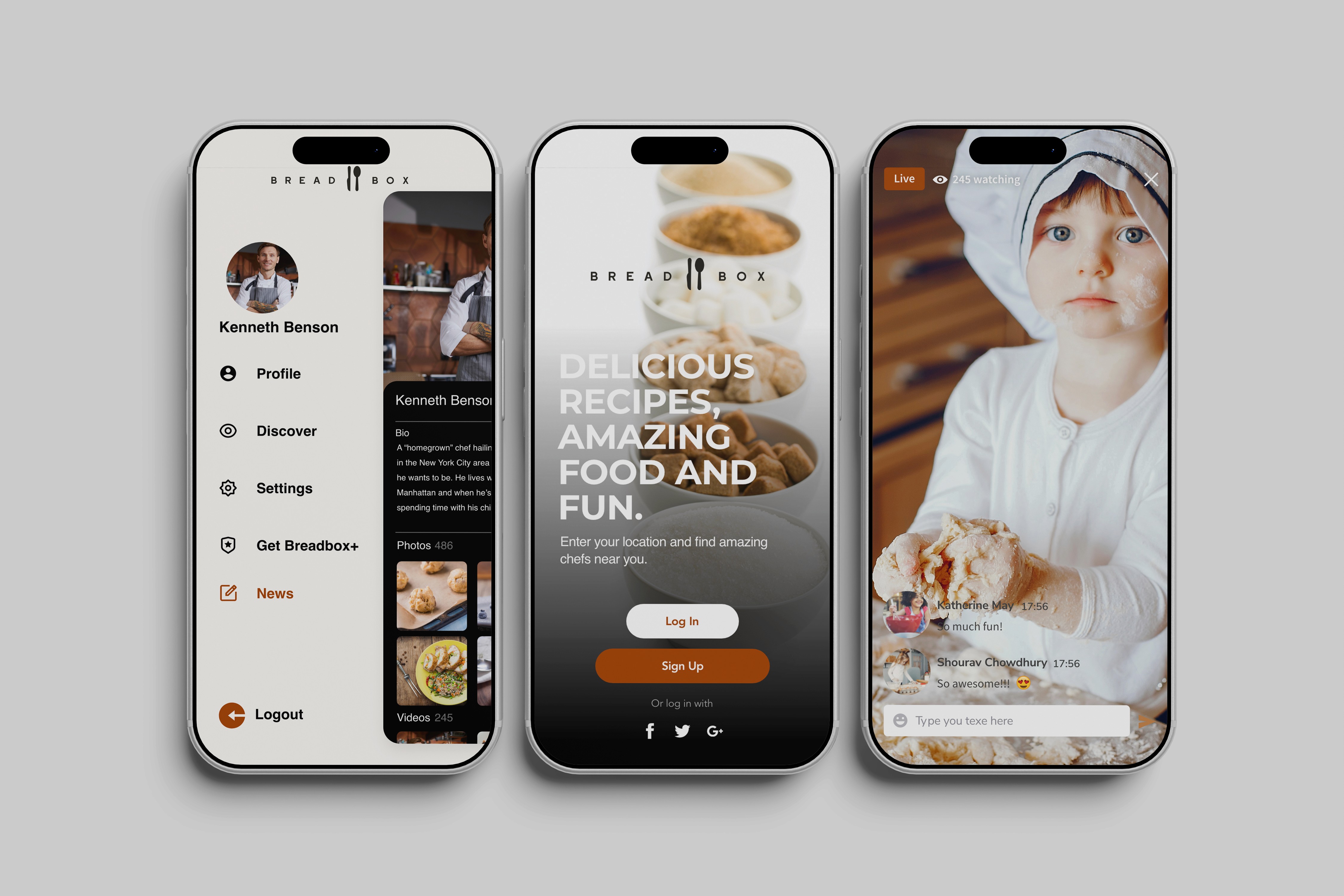 Breadbox was born so home-grown chefs can showcase their skills while food lovers watch, learn, or cook along in real time. To make the experience seamless, Breadbox integrates with local grocery delivery services, allowing users to order recipe ingredients on demand—turning inspiration into a meal with just a few taps.